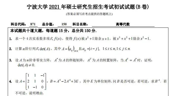 2004-2025年宁波大学871高等代数考研真题试卷【不含22年】