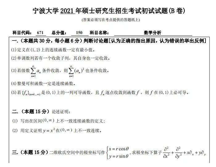 2006-2023年宁波大学671数学分析考研真题参考答案