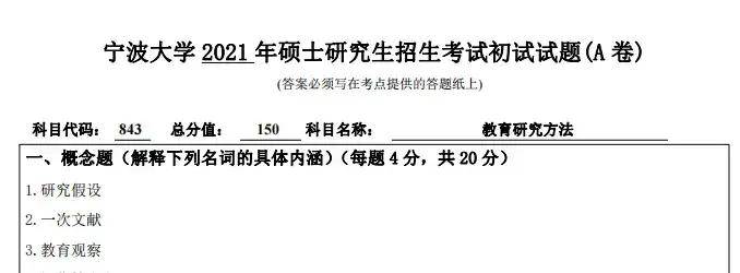 2021-2025年宁波大学843教育研究方法考研真题试卷