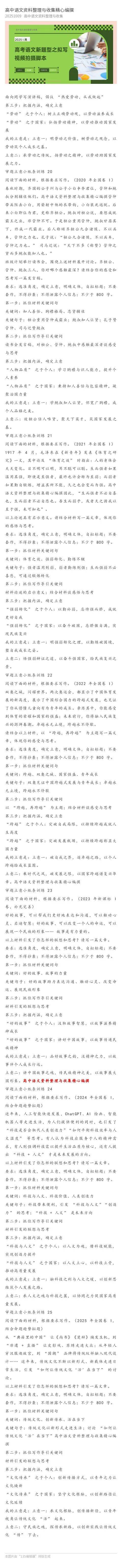 今天,推出“审题立意训练小纸条”特别版:25年高考全国卷真题版(教师版)。需要的,请直接复制,或使用下方的下载链接下载。