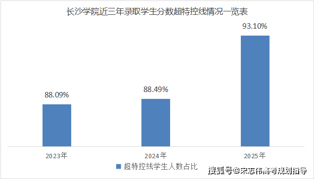 在27个高考省份中,3322名学生为生源省份特控线线上生源,占比93.10%,其中,湖南省物理类投档分超省控线56分,超特控线5分;历史类投档分超省控线66分,超特控线9分。