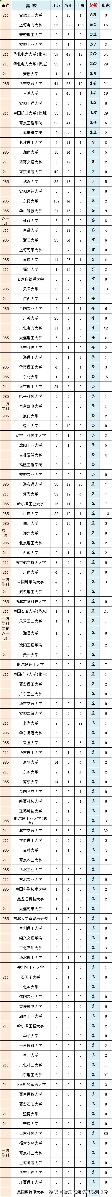 五、山东、江苏、浙江、上海、安徽电力各高校录取信息