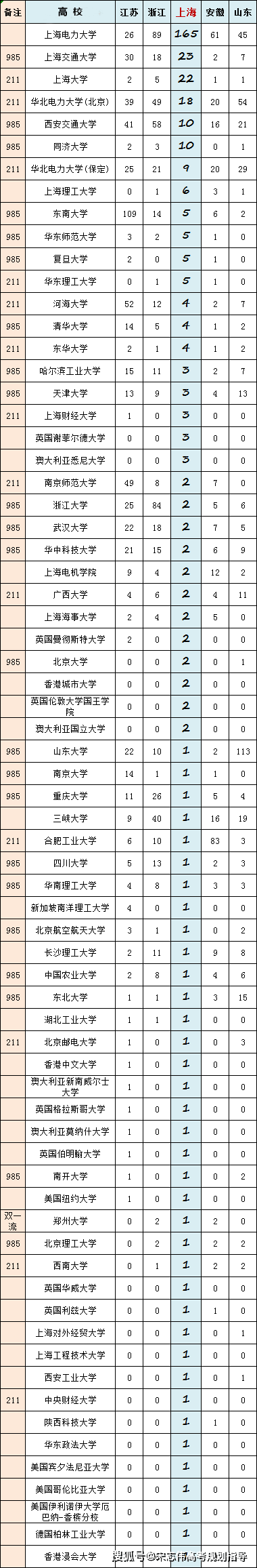 其中本地高校上海电力大学独占鳌头165人。其次上海交大、上海大学、华电北京人数略多。