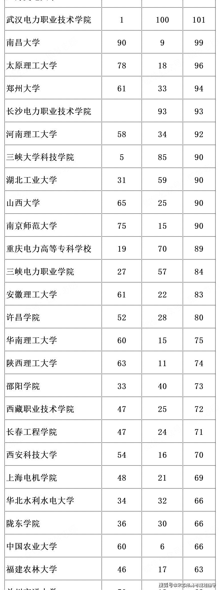 不得不提的是,原电力部直属的6所院校:华北电力大学、上海电力大学、东北电力大学、三峡大学、南京工程学院、沈阳工程学院、长沙理工大学都在前12名。