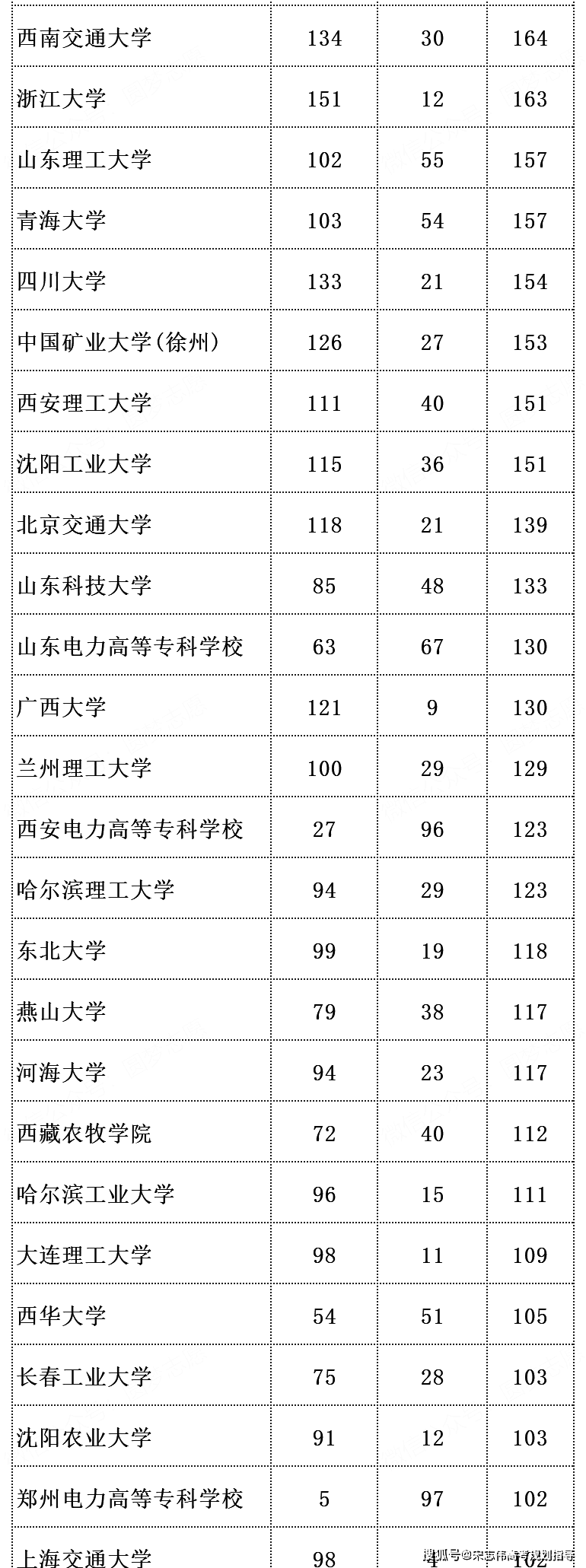 ●此外,西安交通大学 、华北电力大学(北京) 、中国矿业大学、上海交通大学 、上海电力大学 、浙江大学人数位居前10。