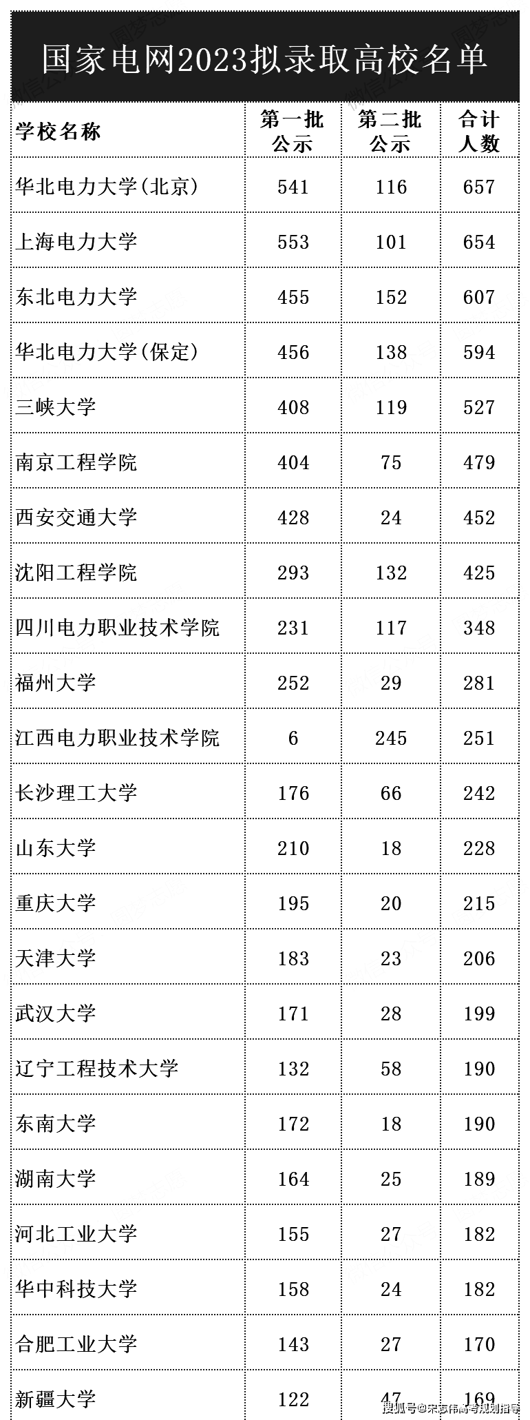 接下来我们就以2023年国家电网(第一批、第二批)拟录取名单为例,来分析一下哪些大学哪些专业的学生报考国家电网更有优势。