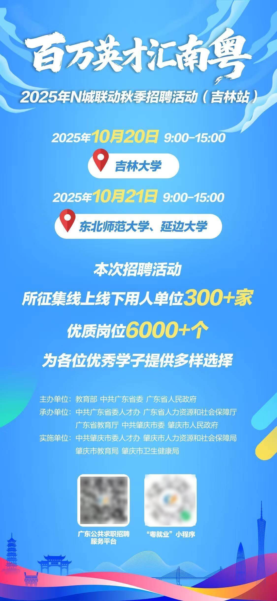 “百万英才汇南粤”2025年N城联动秋季招聘活动(吉林站)即将来袭