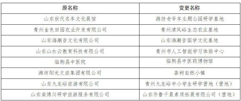 根据《潍坊市市级中小学生研学基地、营地管理办法》相关规定,经实地评估、评议,决定对部分市级中小学生研学基地(营地)实施撤销与变更名称,现将名单进行公示(见附件),公示期为10月11日—10月16日。