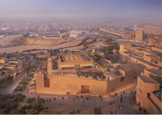 萨勒曼国王知识区项目位于沙特首都利雅得西部德拉伊耶地区,是沙特政府“2030愿景”下为进一步提升首都利雅得教育、文化和旅游水平而投资建设的重大项目。该项目建筑面积约34万平米,签约合同造价约20.8亿美元,主要包括萨勒曼国王大学、嘉佩乐酒店、沙特王室博物馆、萨勒曼图书馆、研究所、文化广场等标志性文化建筑。项目是中国建筑继埃及新首都CBD项目后在埃及承揽的又一重大公建项目,为中国建筑在沙特市场实现可持续发展奠定了坚实基础,也为实现沙特“2030愿景”贡献更多中建力量。