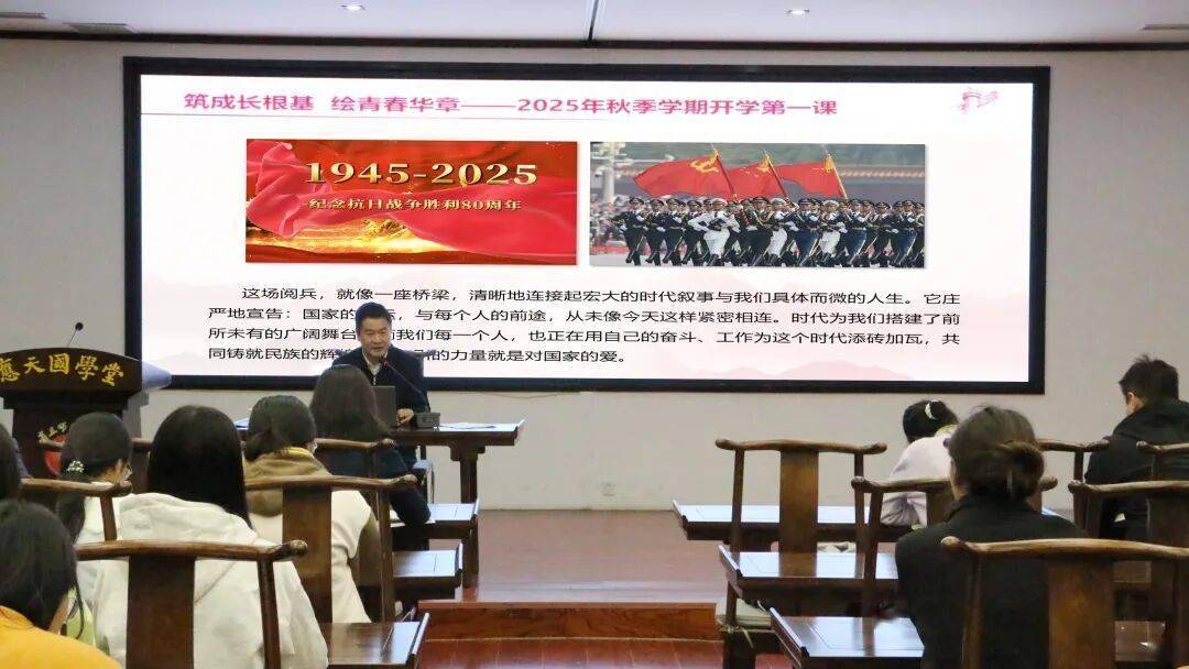 校长郑直以“探索大学无限可能 绽放青春多彩人生”为题为2025级新生讲授新学期“开学第一课”。