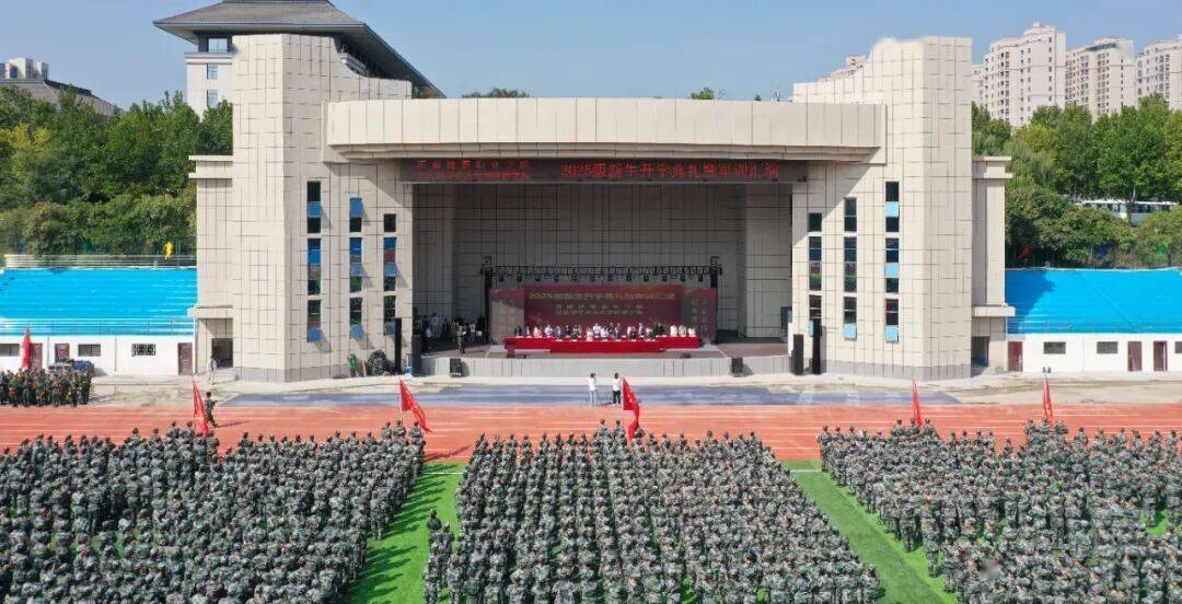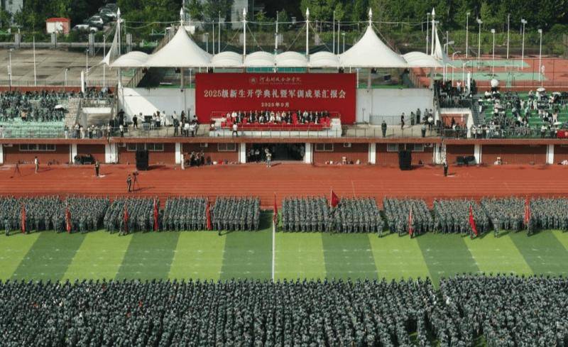 9月30日上午,河南城建学院在五环体育场举行2025级新生开学典礼暨军训总结表彰大会,来自全国各地的8200余名新生相聚城建校园,开启求学新征程。