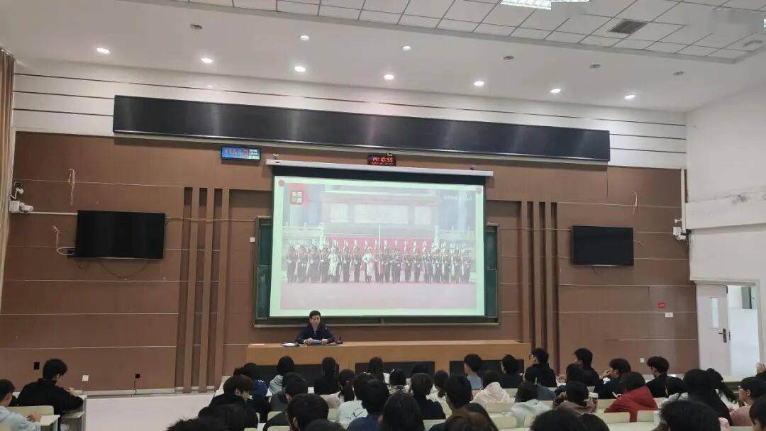 王志军首先带领同学们回顾了纪念中国人民抗日战争暨世界反法西斯战争胜利80周年阅兵的场景,并与开国大典阅兵画面进行对比,生动阐释了国家从积贫积弱到繁荣富强的伟大飞跃。接着,他从“德”字的甲骨文讲起,深入阐述了立德对个人成长成才的重要性,重点解读了习近平总书记提出的“明大德”要求。他指出,梦想从学习开始,事业靠本领成就,他期望同学们珍惜时光,勤学不辍,并将知识应用于实践。