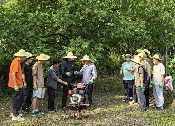 清华大学师生向农民学习“翻地机”使用。清华大学马克思主义学院供图