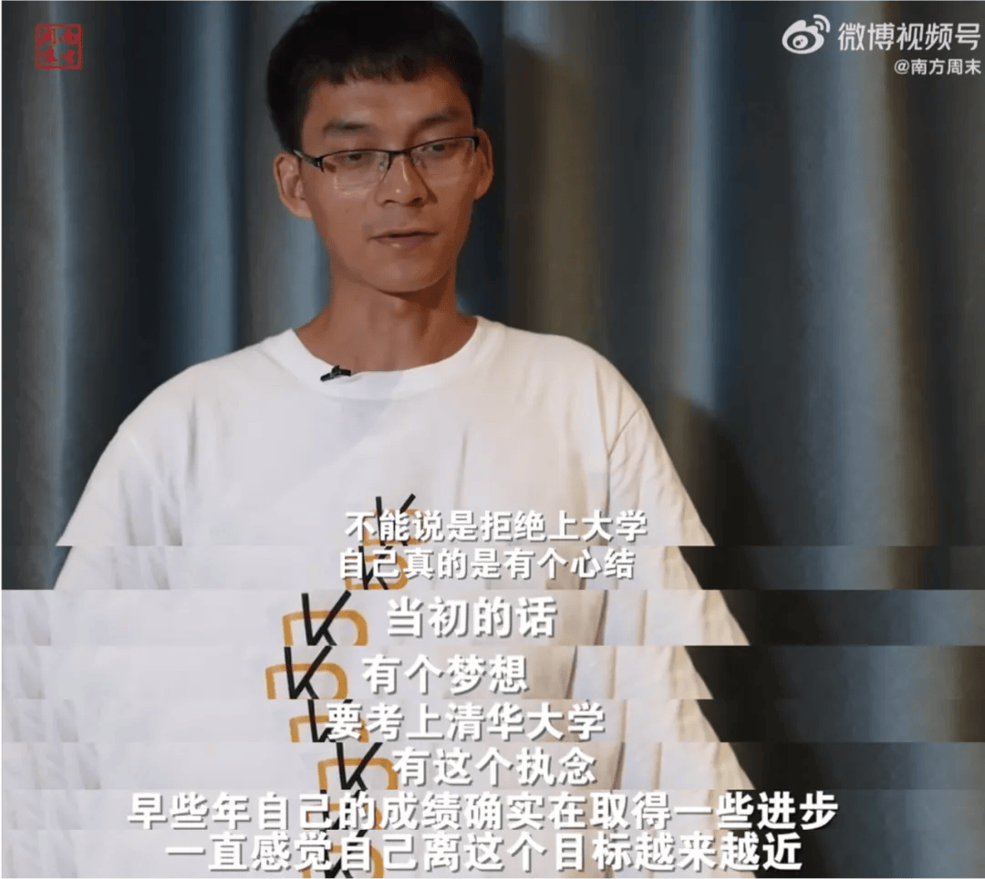 2025年,他第一次在大学完整上完一个学年,也就是在最近他接受媒体采访的采访,他对自己的16年高考路公开发表了反思:
