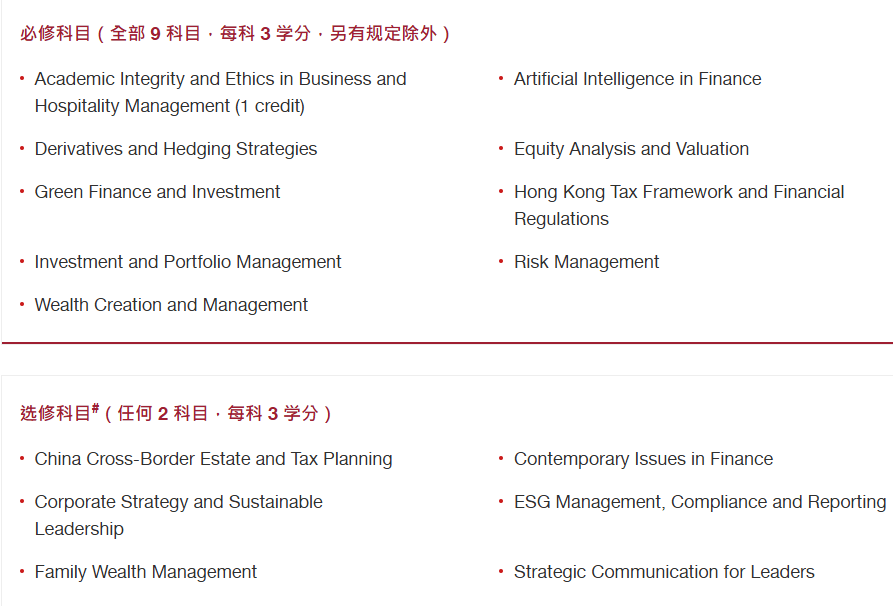 该课程旨在培养学生具备进阶的专业知识与技能,能够分析复杂的财务情况,制定量身打造的财富创造与管理策略。均衡的课程设计融合理论基础与实际应用,帮助毕业生在瞬息万变的金融业界脱颖而出。