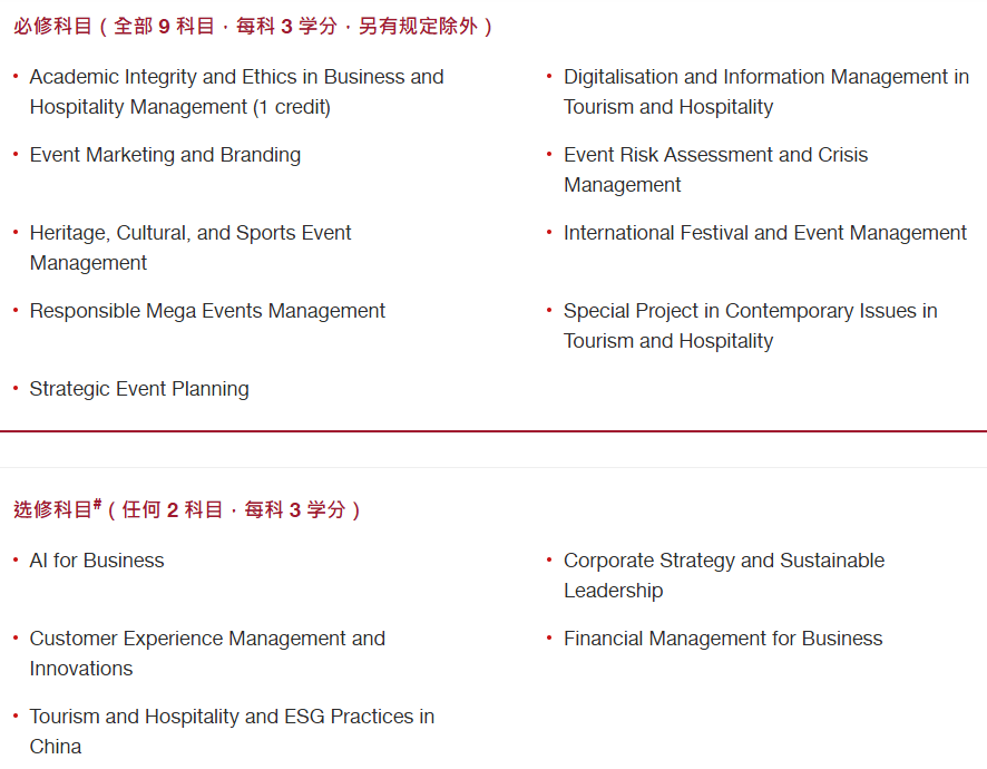 活动产业已成为许多著名或国际旅游目的地的重要组成部分。因此,管理人员及专业人士需要具备跨领域知识与技能,才可突围而出。该课程旨在培养学生具备多元学科的知识基础,并在全面的学习架构中掌握广博的当代知识,深入理解盛事及相关机构的运作,以制定具有竞争力的方法及策略。