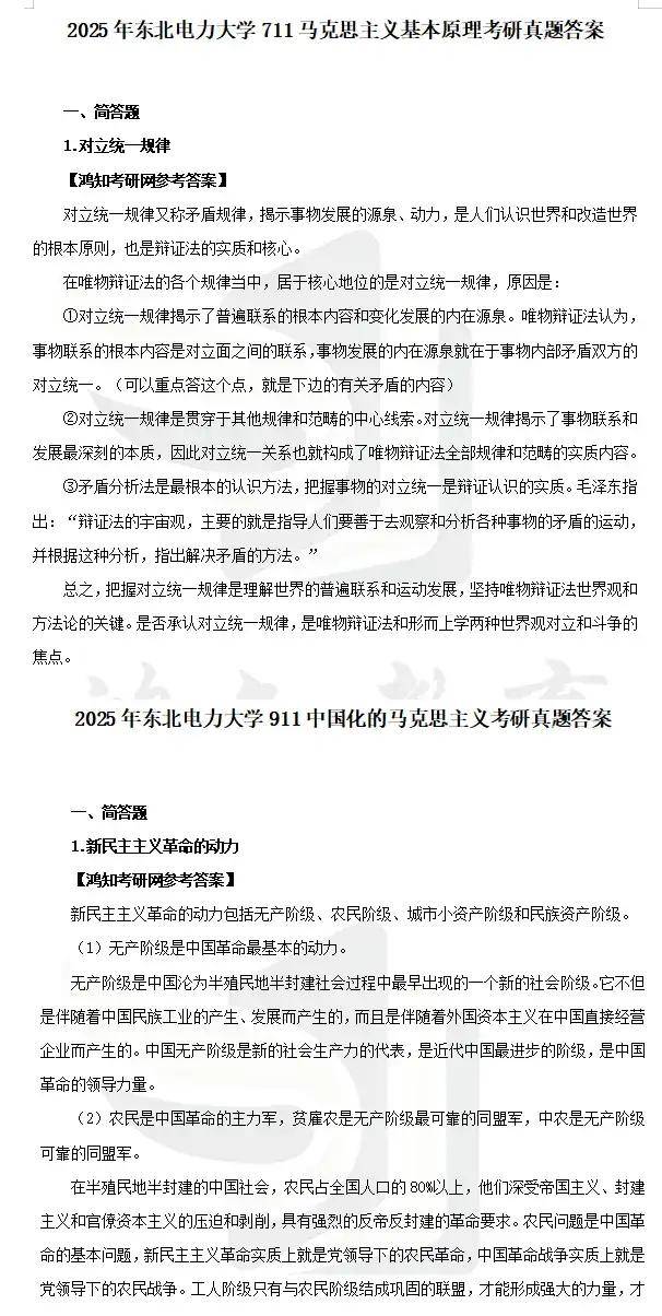 2020-2025年东北电力大学711马克思主义基本原理考研真题参考答案