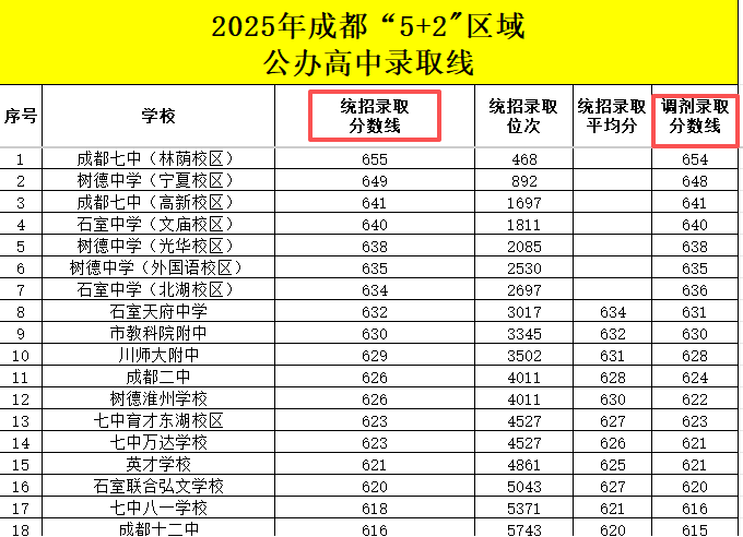 比如七中林荫,统招计划里最后一个被录取的考生是655分,那统招线就是655分;调剂计划里,最后一个被录取的考生是654分,那调剂线就是654分。
