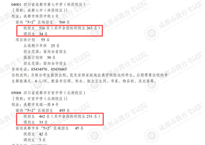 调剂生:户籍与学籍不在成都同一招生区域,选择在学籍地升学的考生。