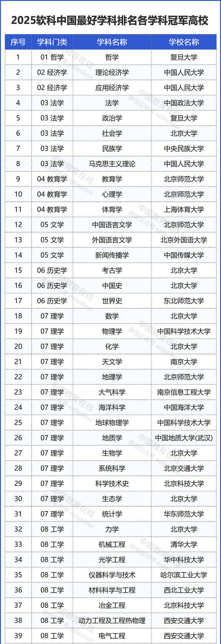本次排名中,共有 58 所高校凭借突出的学科实力 “突围”,成为各学科领域的 “冠军校”,不同类型高校的优势学科特色鲜明: