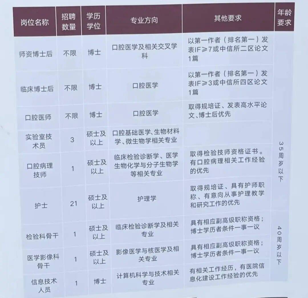 第二家是某西部地区大城市的口腔医院(三甲)。招聘的口腔医师数量同样不限,但要求拥有博士学历,且要求发表过高水平论文,优先博士后。