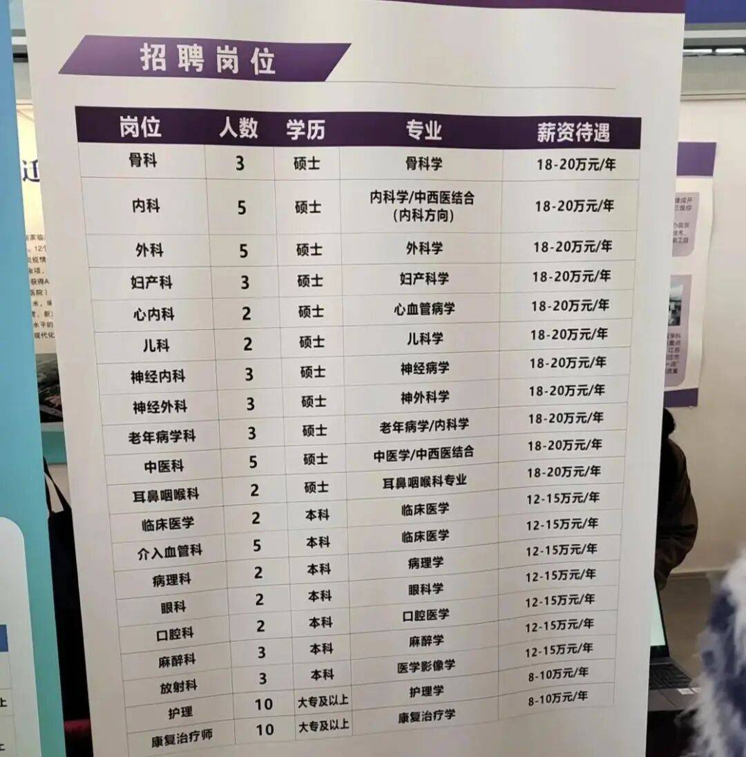 护理岗位则是放低到专科学历,而且招收20名高校毕业生,平均年薪8万元到10万元。这样的薪资,在普通地级市已经相当不错。
