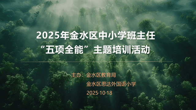 秋雨洗尘迎盛会,金风玉露聚高贤。10月18日下午,郑州市金水区中小学班主任“五项全能”主题培训活动在思达外国语小学盛大启幕,为区域班主任专业发展擘画新篇。