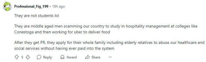 在社交平台上,当地民众抱怨称:“拖家带口直接入境学签工作,然后媳妇工签工作,孩子们免费上学,真的是太便宜他们了,赚的钱寄回印度,在印拿大不怎么消费,却占用了公共资源。”