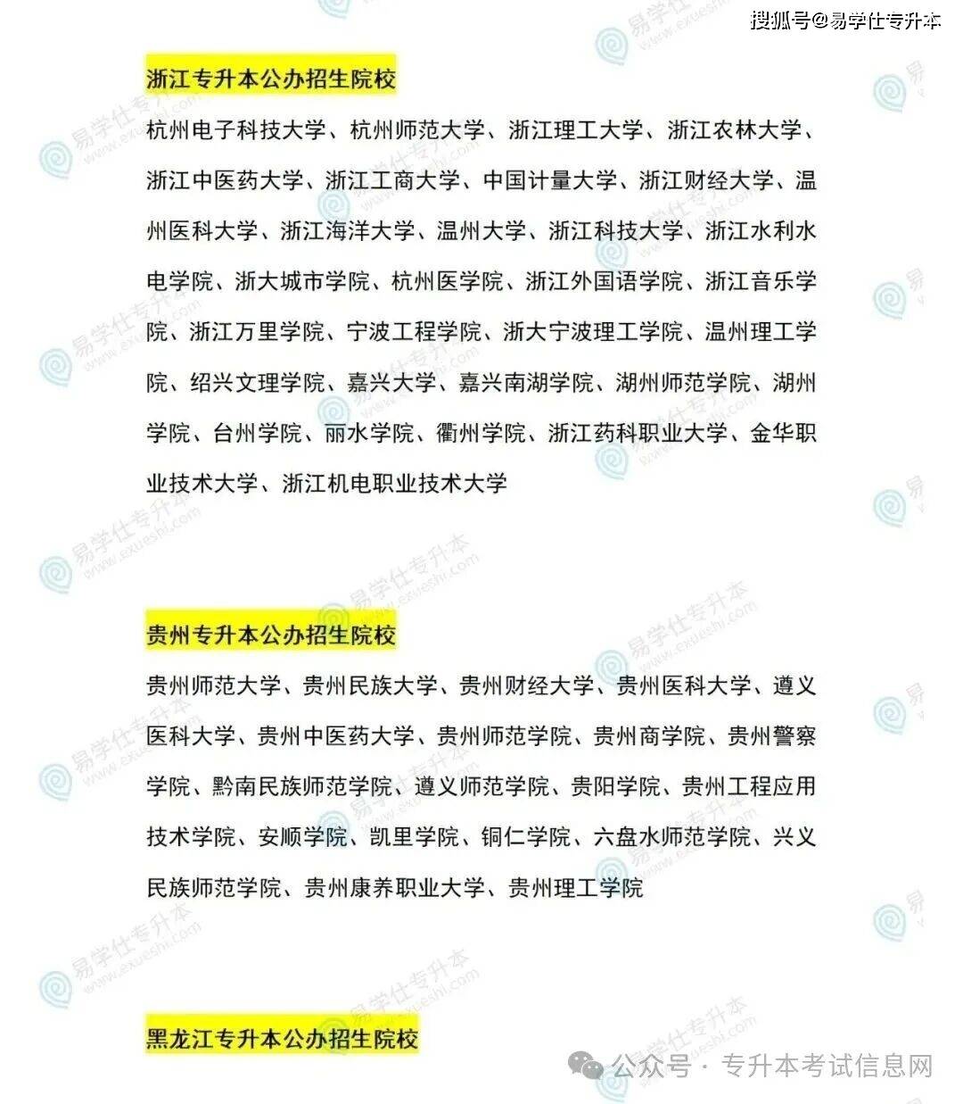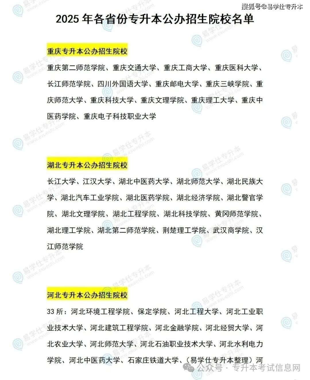今天我就再把各省份专升本的公办本科院校汇总整理一遍,大家可以参考。
