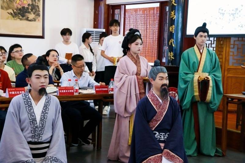 读书会上,同学们依次饱含激情地进行了哲学诗歌朗诵、《论语•公西华侍坐章》话剧表演和《大学》诗歌选段朗诵。在哲学经典阅读分享环节,五位专家讲述了他们对于哲学经典阅读的理解与心得。在听众交流发言环节,同学们就经典研读中的困惑和思考与在场专家们进行深入交流。