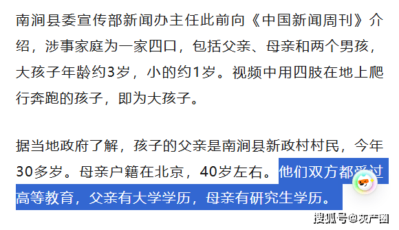 新闻里明明白白写着,孩子父母双全,并且双双接受过高等教育。父亲有大学学历,母亲还是研究生学历,理应是一个文明家庭。