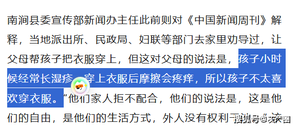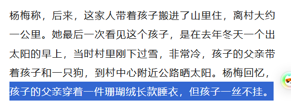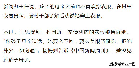 村里人说,孩子母亲以前也不喜欢穿衣服,常常衣着暴露,后来经过劝说才好转。