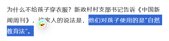 小孩父亲表示,这是一种“自然教育法”。