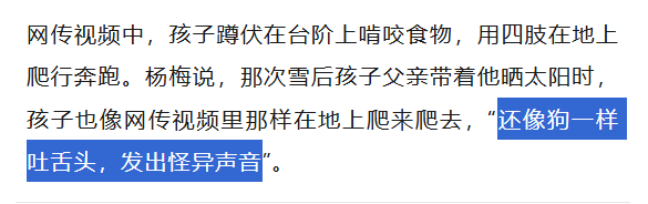 如果家长对他的这种“野蛮教育”继续下去,这个孩子就完全毁掉了。他完全无法回到正常社会的生活,未来很有可能只能像动物一样狼狈生活。