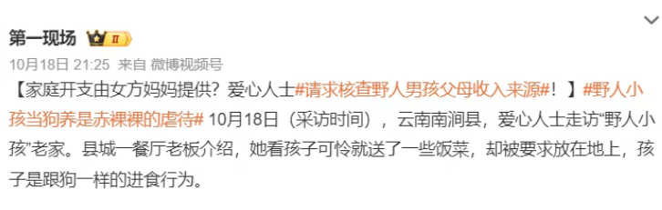 另一条新闻提到,有人看到孩子可怜,想给孩子提供一些饭菜,却被要求放在地上。