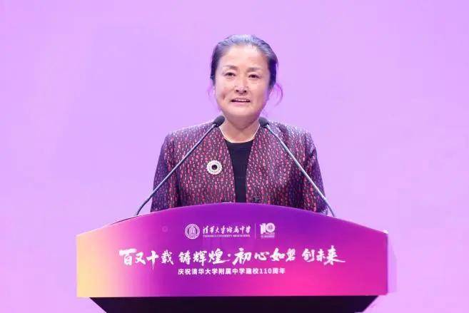 方妍校长首先向110年来关心爱护、支持帮助附中的社会各界和各级教育部门表示诚挚的敬意,向110年来风雨兼程、荣辱与共的清华大学表示由衷的感谢,向110年来热爱家园、辛勤耕耘的附中人表示最热烈的祝贺。她表示,历史的接力棒到了新一代附中人的手上,我们需要站得更高、看得更远,以“时代为志、育人为本、行动为要”为基本遵循,以“打造适合的治理体系,锻造适应的治理能力”为基本支撑,明确“当好人民教育新示范,办好强国教育新样板”的“两新”目标,回答好“集团化办学”综合题、“AI+教育”压轴题、“服务国家、走向世界”拔高题。面向2035年建成教育强国的宏伟征程,全体附中人要只争朝夕、笃志前行,交上一份问心无愧的历史答卷。