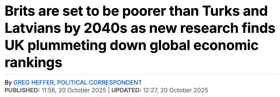 ●研究预测:英国人均GDP即将落后于土耳其和拉脱维亚