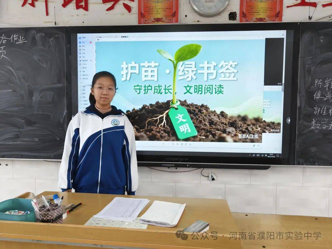为大力营造清朗明净的校园文化环境,保护未成年人身心健康,2025年10月20日学校开展“护苗·绿书签”主题班会活动。