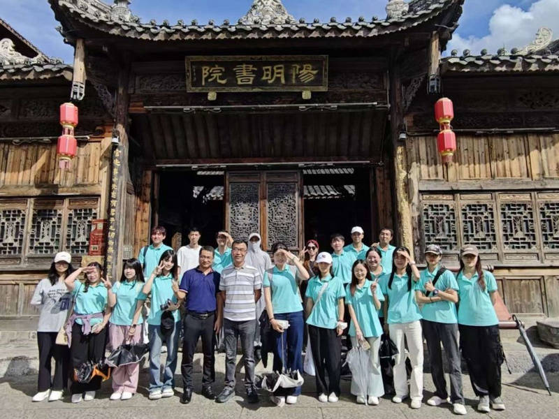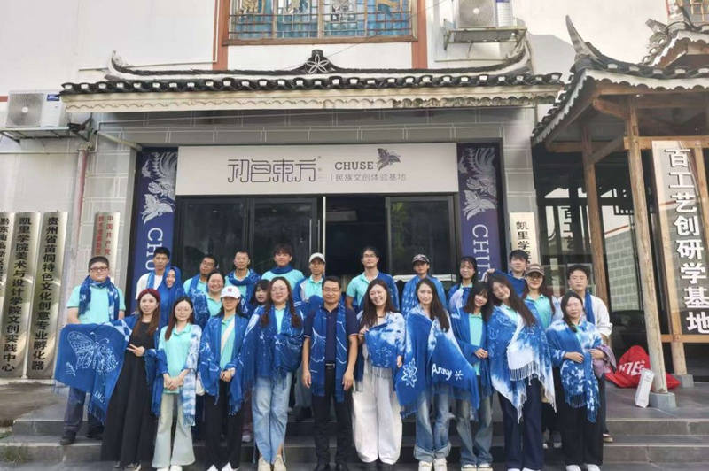 两天的研学行程中,台湾学子参观了凯里学院博物馆、美术与设计学院实践实训室,深入了解凯里学院的民族文化研究与教学成果。他们走进西江千户苗寨,沉浸式体验苗族村寨的日常生活,欣赏原生态的民族文化与特色建筑。在初色东方双创基地,他们体验了非遗蜡染制作,感受传统工艺与现代创新的完美融合。他们还走访了下司古镇与阳明祠,在历史遗迹与人文景观中感悟中华文化的深厚底蕴与传承脉络。