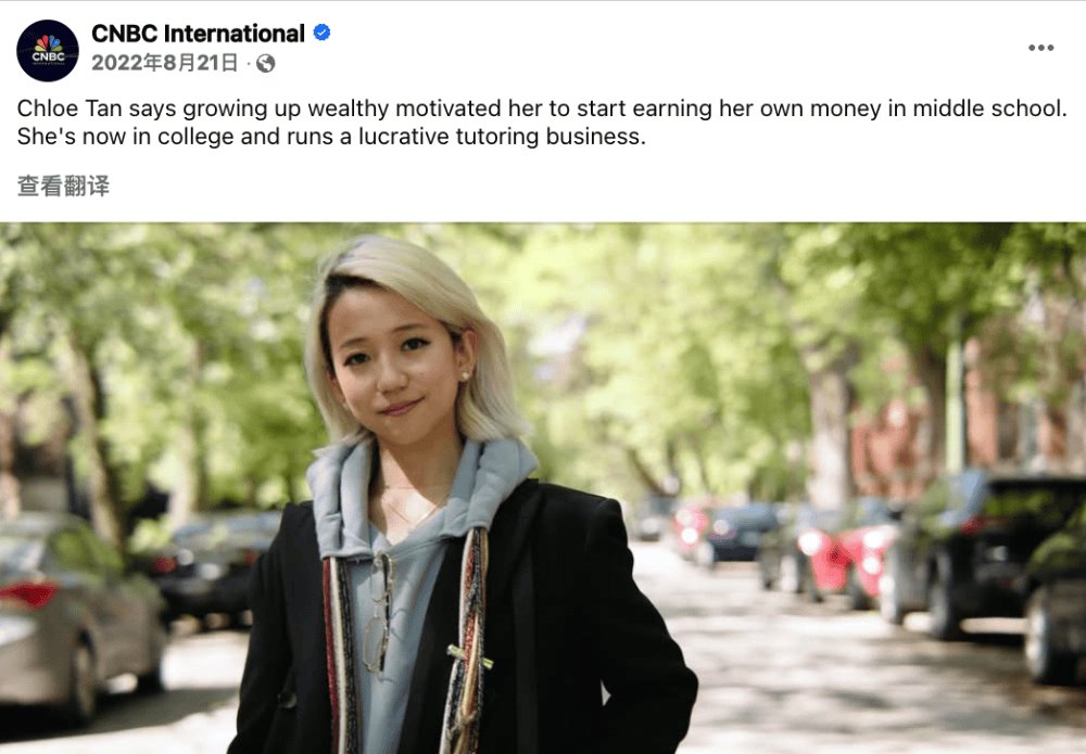 之前CNBC公开报道过一位亚裔学生Chloe Tan,她中学在上海国际学校就读,那时就开始了自己的家教业务,每小时收费67美元,入读芝加哥大学后,辅导学生年收入接近6万美元,相当于一年近40万元。
