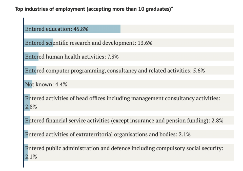 也就是说,教育行业几乎成了剑桥毕业生的首选地。