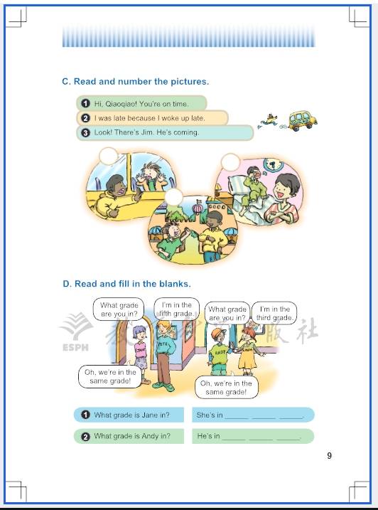 - 问候与介绍:Hello! What’s your name? My name is... / This is my friend.