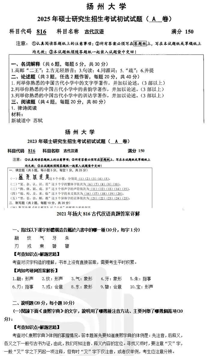 2014-2021年扬州大学816古代汉语考研真题答案详解(答案到21)