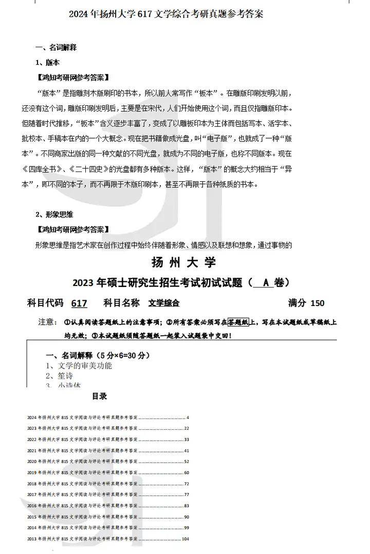 2021-2025年扬州大学617文学综合考研真题参考答案