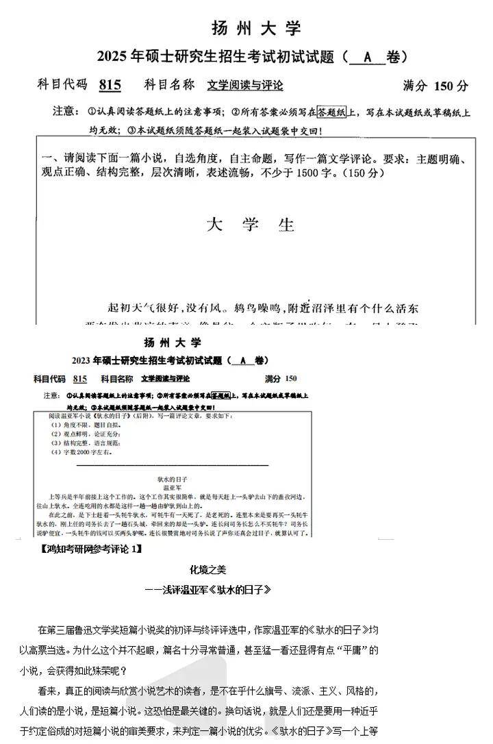 2013-2025年扬州大学815文学阅读与评论考研真题试卷与参考答案