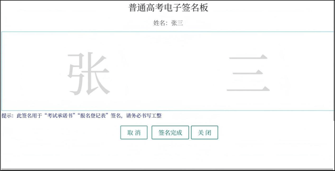 考生签名前再次核对基本信息、联系方式、个人简历、报考科目,每一项勾选“核对无误”后再点击最下方“确定”,弹出签字二维码,考生扫描二维码进行电子签名,注意签名时书写工整。