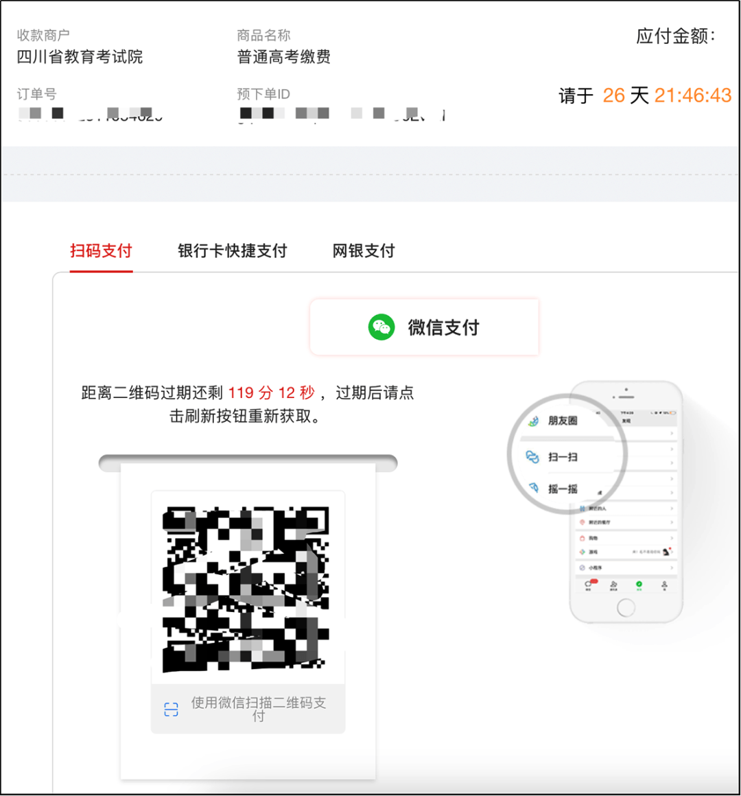 在支付页核对订单信息,核对无误后,进行扫描支付。