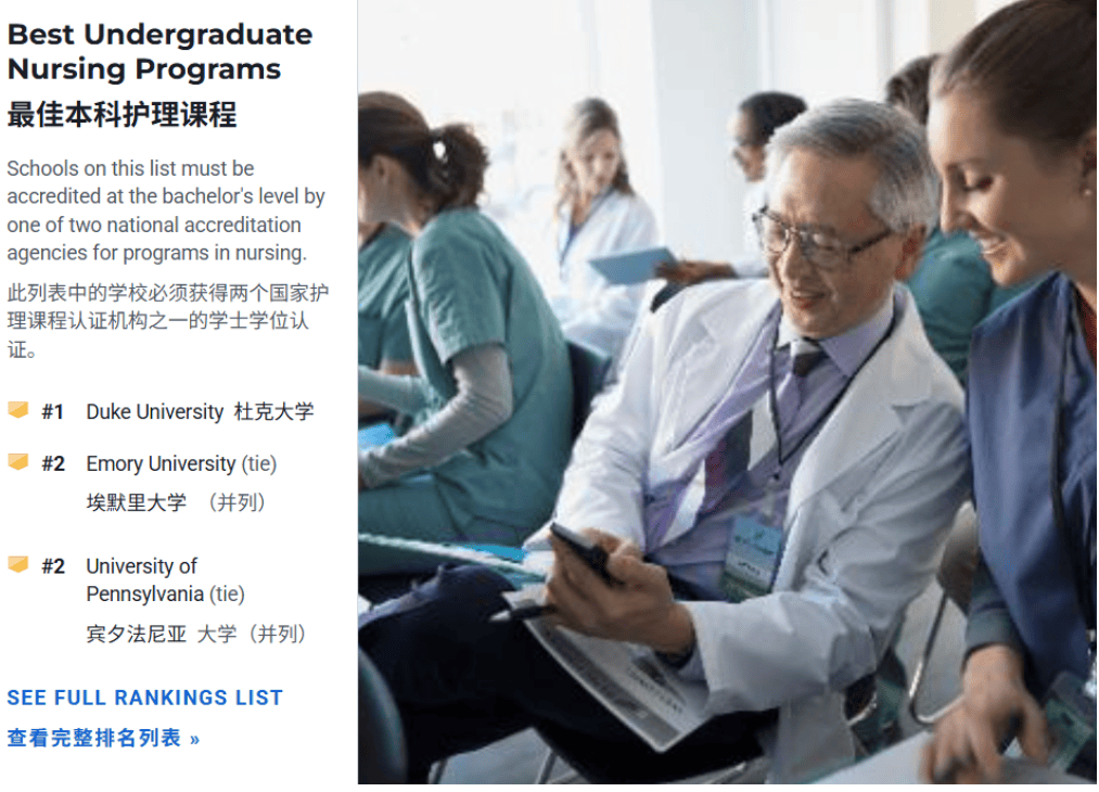 在2026年U.S. News护理本科排名中,杜克大学稳居第一,宾大和埃默里并列第二。