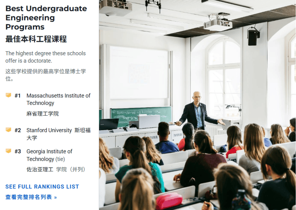 工程学方面,MIT、斯坦福和佐治亚理工继续领跑。