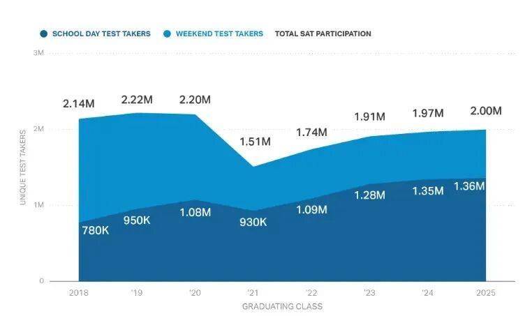 前不久,CB 公布了 2025 SAT 全球分数报告。报告指出,2025 届高中生中,有超过 200 万名学生至少参加过一次 SAT 考试。